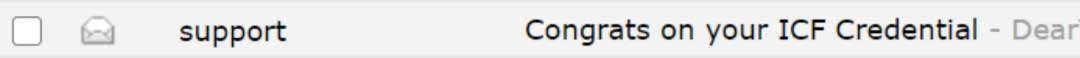 两天后,我便收到了ICF的通知,祝贺我考过,并颁发给我电子证书和电子印章。发件人的名称是support(也要留意邮箱的垃圾箱)。